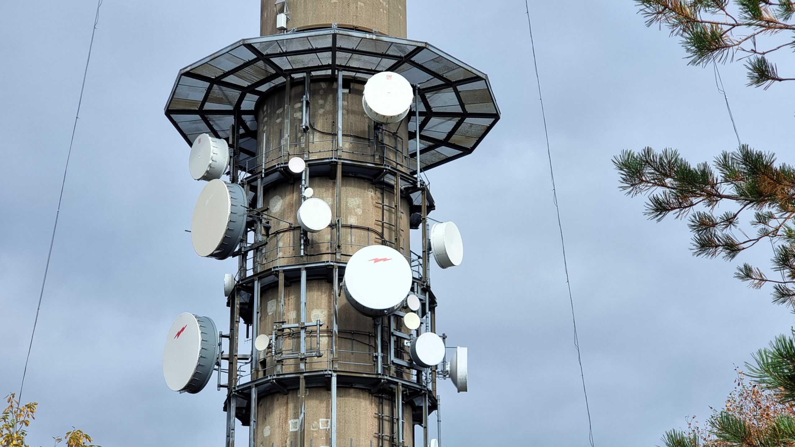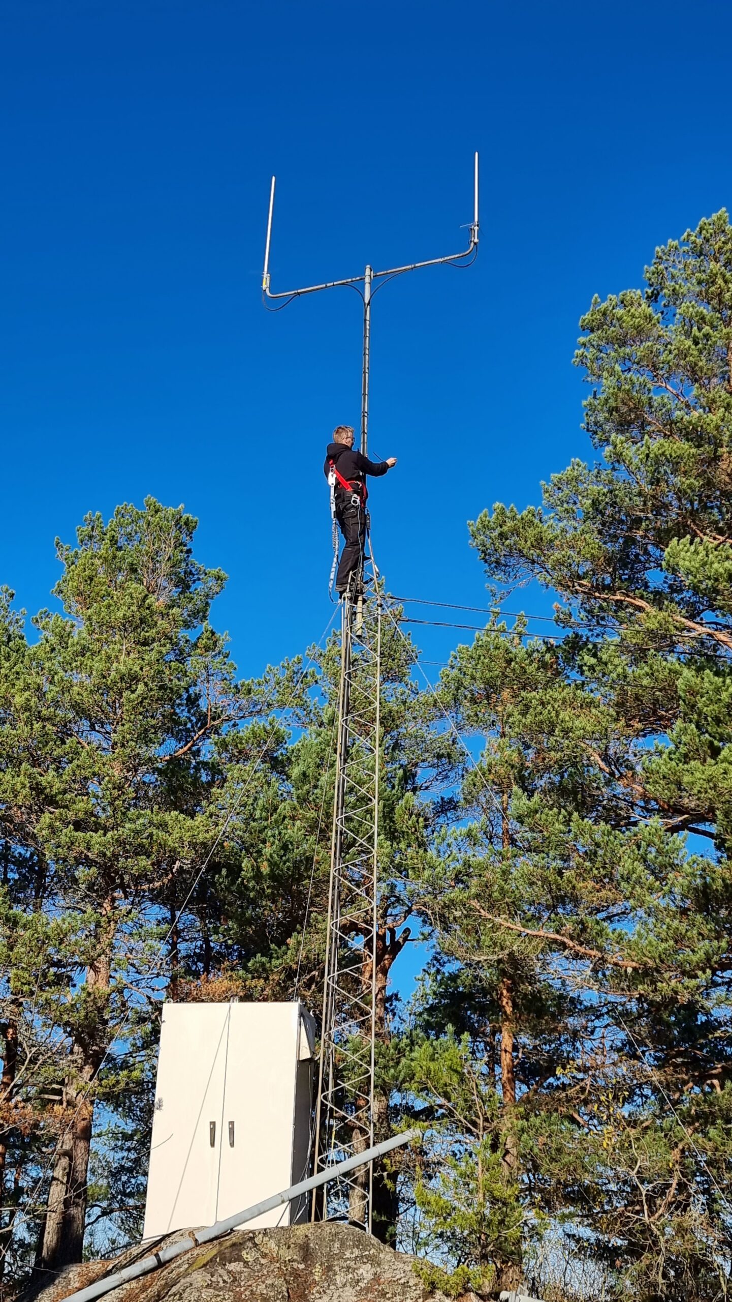 Der har vi et møterom i 1.etasje med radioutstyr montert, og antenner på taket.
